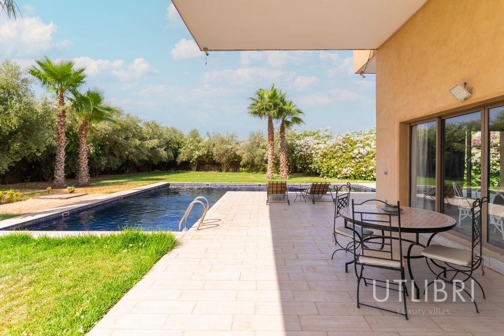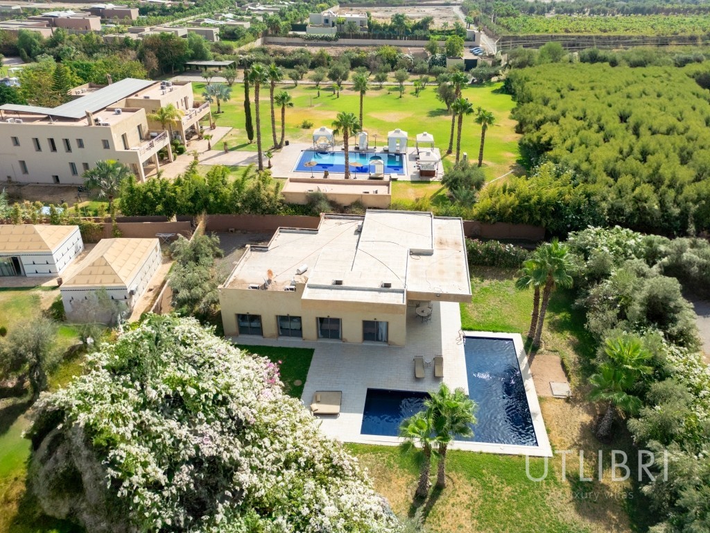 • La villa Pluma se distingue par son architecture moderne et épurée, offrant un confort haut de gamme grâce à ses techniques de construction récentes. • Le vaste salon et les suites lumineuses avec dressings apportent une sensation de bien-être grâce à la luminosité omniprésente. • Les salles de bain luxueuses et la literie de marque raviront les clients les plus exigeants. • L’immense piscine et le jardin incitent au repos et à la convivialité sous le soleil de Marrakech. • Le personnel de qualité, discret et attentionné, vous assurera un séjour des plus agréables. Conclusion : La Villa Pluma allie une architecture contemporaine, une décoration raffinée et un confort exceptionnel pour offrir une expérience unique. Avec ses espaces lumineux, son immense piscine et son personnel dévoué, elle constitue le choix idéal pour des moments chaleureux et reposants en famille ou entre amis. Une villa à découvrir absolument pour un séjour inoubliable à Marrakech !