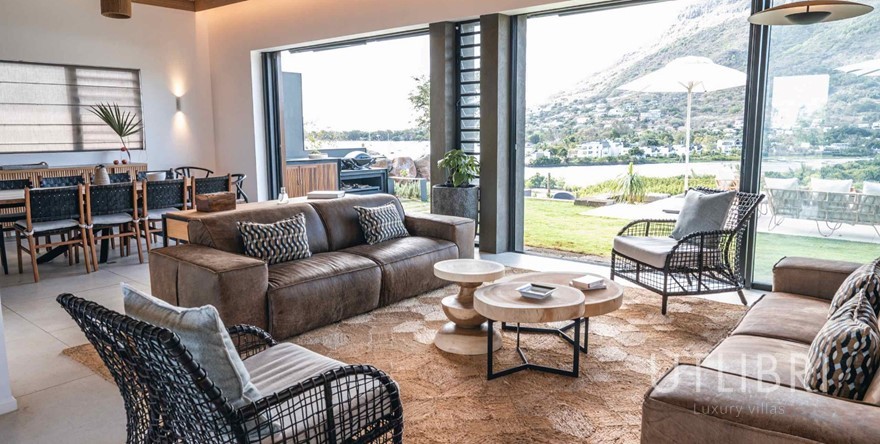Le grand espace à vivre ouvert sur la vue, comprenant salon, salle à manger, cuisine entièrement équipée et salle TV, parfait pour partager des moments en famille ou entre amis.