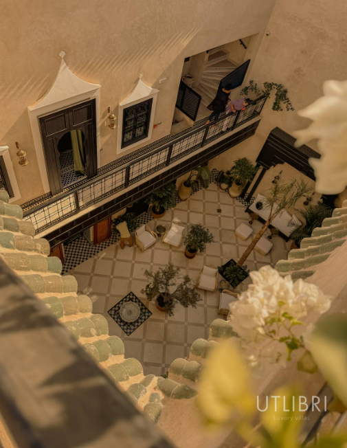We first love the unique atmosphere of this riad, where Moroccan craftsmanship blends gracefully with contemporary design. Its location is exceptional, just a few steps from Jemaa el-Fna square, right in the heart of the Medina, while still offering remarkable peace and quiet. The two patios, natural light, and harmonious layout of the seven bedrooms, including a family suite, create a warm and inviting setting, perfect for experiencing Marrakech in all its charm.