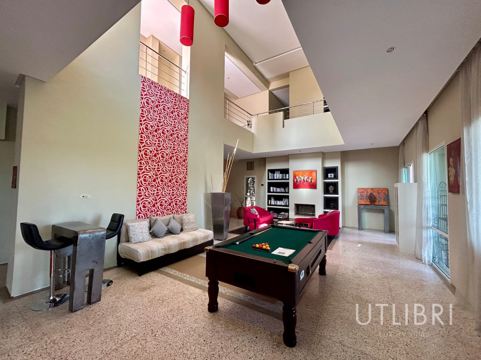 Située dans la Palmeraie de Marrakech, cette magnifique villa offre une vue impressionnante sur la chaîne de l’Atlas, créant un cadre idéal pour des vacances inoubliables. Le design intérieur minimaliste contraste élégamment avec la sophistication des objets de décoration, transformant les espaces de vie en un cocon de bien-être.