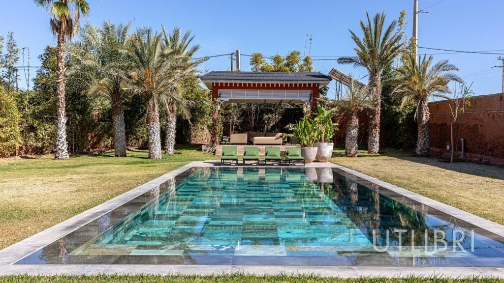 À l’extérieur, un pool house ombragé devient le refuge idéal pour savourer un petit-déjeuner paisible ou une sieste au frais.