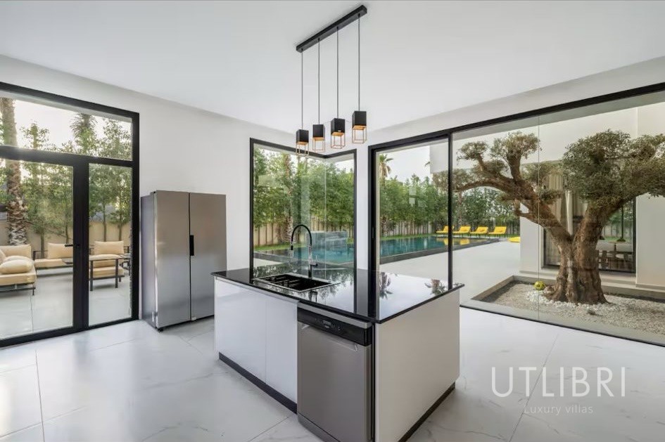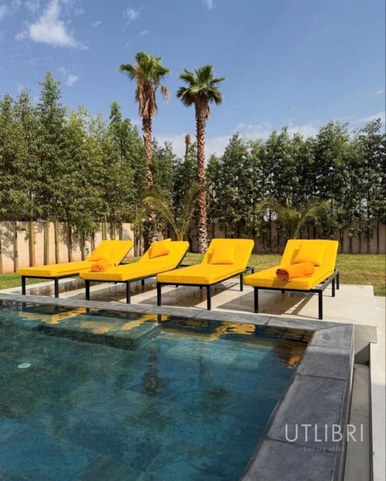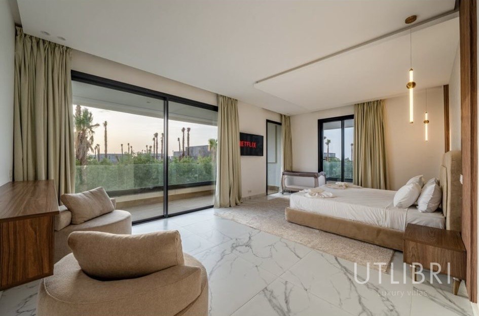 Située sur la route de l’Ourika à Marrakech, cette villa contemporaine de 5 chambres déploie 380 m² habitables sur un terrain de 500 m². Son design moderne et épuré, associé à de grandes baies vitrées, baigne chaque espace de lumière naturelle et offre une vue apaisante sur le jardin.